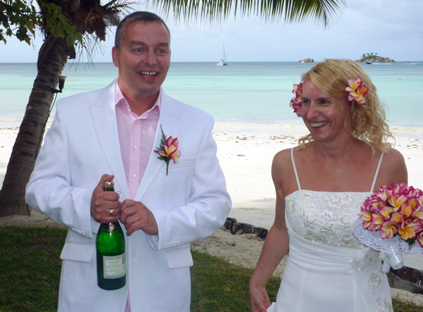 Der Präsi TRAUT sich ja was Kaum ist die Sommerpause vorbei, sind schon einige Neuigkeiten zu vermelden. Der 1.FC Union Berlin startete mit einem Punkterfolg bei Alemannia Aachen in die neue Zweitligasaison. Unser Fanclub Komakolonne legte beim diesjährigen Drachenboot-Fun-Cup wieder grandiose Zeiten hin, zog in den Finallauf ein und belegte mit einer fanclubinternen Bestzeit von 56:20 sek. den 4. Platz von insgesamt 35 Teams. Unions Zweete (!) besiegte unseren dynamischen Erzfeind aus Hohenschönhausen mit 2:1 und in einer Umfrage des Berliner Kurier wurde der 1.FC Union vor den Eisbären und Hertha BSC zum beliebtesten Berliner Verein gewählt. Außerdem lassen wir an dieser Stelle mal unseren Präsi zu Wort kommen, denn eine Sache will er euch persönlich mitteilen: „Hallo Jungs! Es ist ungewöhnlich, dass ich mich hier persönlich zu Wort melde. Aber ich möchte diese Gelegenheit nutzen und euch gratulieren. Beim Drachbootrennen habt ihr euch eisern geschlagen und auch ohne mich einen fantastischen 4.Platz erreicht. Ich bin Stolz auf euch! Während ihr euch auf der Da(h)me abgerackert habt, war ich im Urlaub und hab es mir in 10.000 km Entfernung auf den Seychellen gut gehen lassen. Die Seychellen sind eine kleine Inselgruppe im Indischen Ozean mit endlosen weißen Sandstränden, sanft gebogene Palmen und glitzernde Wellen. Ein Paradies mitten in den türkisfarbenen Wellen des Indischen Ozeans. Wir konnten im Vallée de Mai die größten Kokosnüsse der Welt bestaunen, auf der Insel Curieuse mit Riesenschildkröten spielen, wir haben beim Schnorcheln im glasklaren Wasser die farbenprächtige Unterwasserwelt bewundert und … haben in der Anse Volbert geheiratet. Ja, Ines und ich sind jetzt Mann und Frau. Unsere Traumhochzeit unter Palmen am weißen Traumstrand der Insel Praslin mitten im Indischen Ozean. Es war nach der Geburt meiner Tochter Nancy der schönste Tag in meinem Leben. So, nun ist das Geheimnis gelüftet. Beim nächsten Heimspiel werde ich euch einen ausgeben…“
